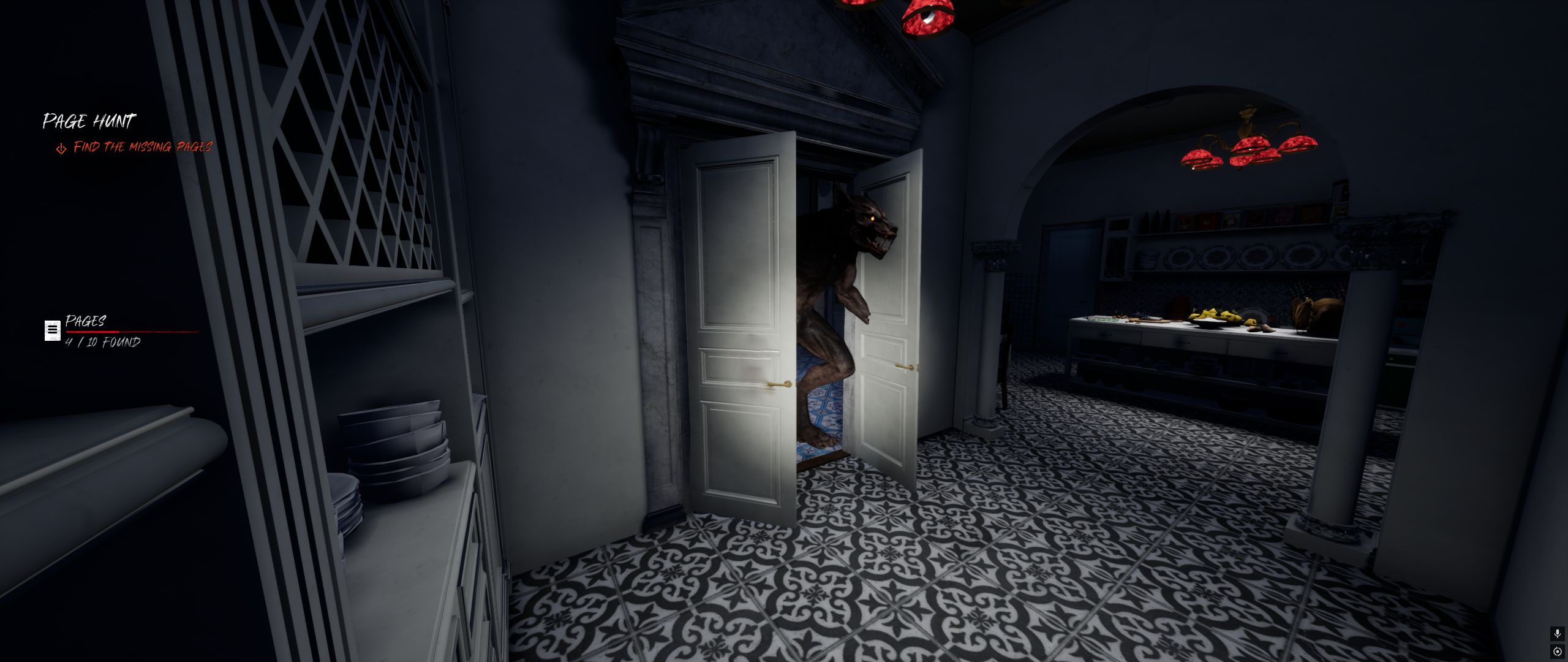 Explore the dark mansion, uncover the cause of the mysterious screaming, find missing book pages, run and hide from the monstrous beast.